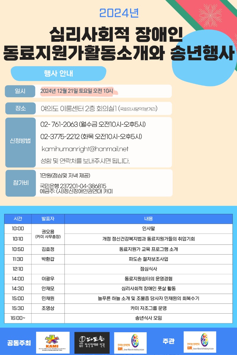 2024년 심리사회적 장애인 동료지원가 활동소개와 송년행사